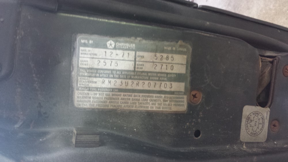 Replacement driver’s door is from another Dec ’71 Windsor built “U” code RR/GTX.