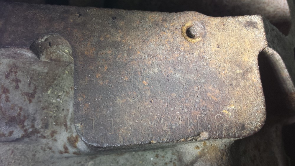 The 4-speed also had the matching sequence number on the ID plate. It looks like the production codes were double stamped onto the plate and there are two separate codes there, both indicating different production dates, according to research on Moparts.com. It appears that there are spacer bearings in the piston rods. I read up on how undersized crankshafts were somewhat normal at the factory, but I also read that this would be denoted with a "+" or something on the upper engine ID pad. I don't see any such markings on the engine pad. Does this mean the crank was turned or replaced from original? It's very difficult to see in the pic, but I am pretty sure the engine ID pad only reads as follows: