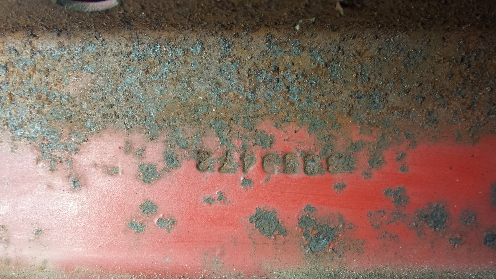 Here is the other stamp, it's approximately in betwen the two little electrical wire support strap pieces, upside down, facing forward.