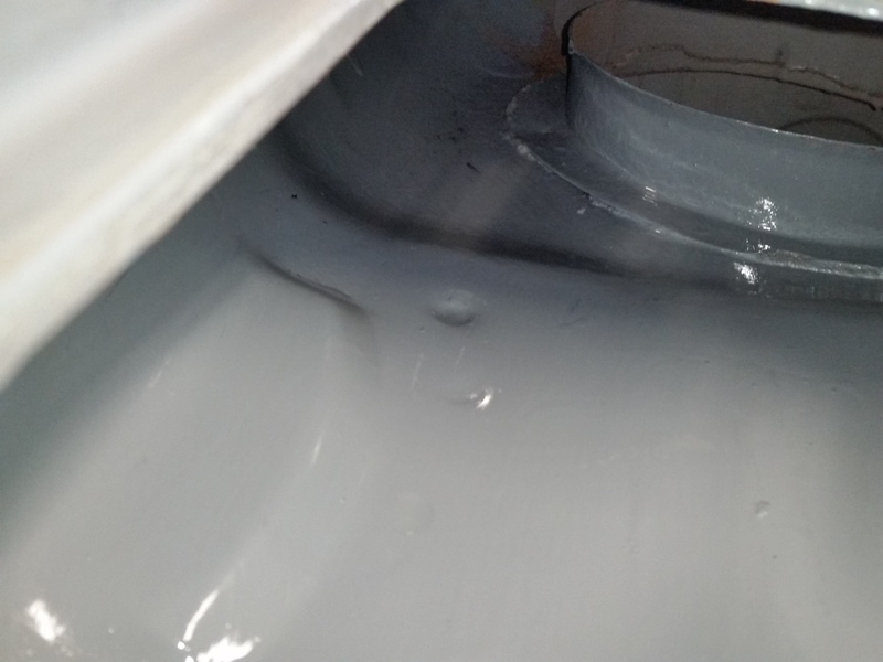 I put some all metal down on the base of the windshield and sanded it down to finish. Here's the stuff I used. Next it was on to inside the cowl area.After scuffing the area down, I applied 2 coats of Rust Bullet. I did have to clean up the area on the drivers side where the reinforcement for the bracket that holds the steering column is located.You can't see the reinforcement as its higher in the picture.