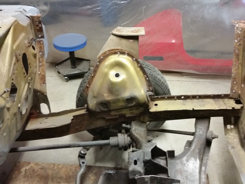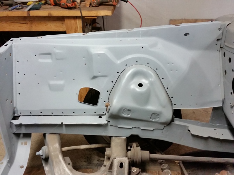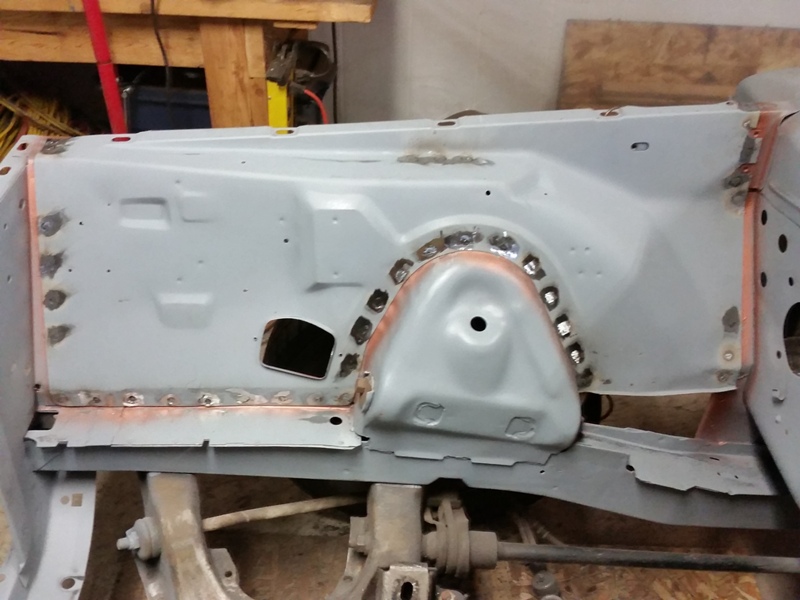 Here's the front side on a final fit check. Now to mark the holes for drilling.and to drill the holes for spot welding.And finally do the welding.Now I have to do some clean-up and give a final coat of primer.