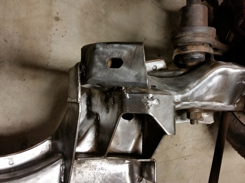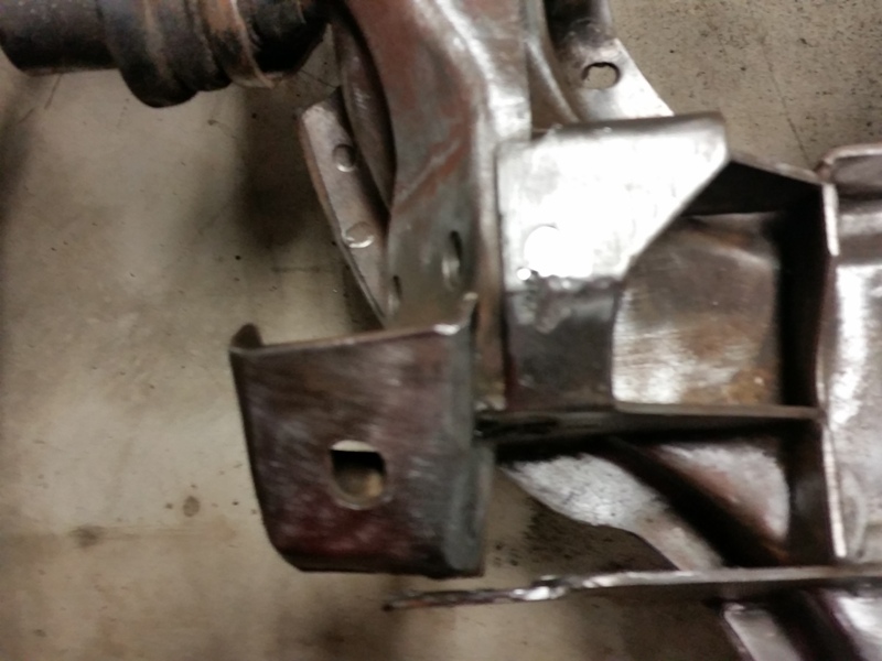 Here's a picture of a k-member I took from E-bay, see how the drivers side mount looks compared to mine. Now I have detached the lower brace as it's been shortened and doesn't go across the width of the mount. I'll have to fix that.[/quote]