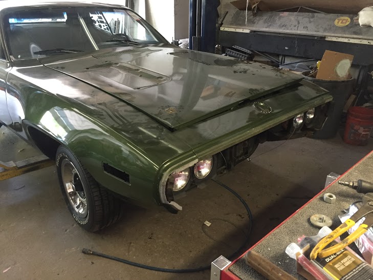 Having completed the long awaited engine tuning work, she runs so smooth, probably would not be able to tell she is 44 years old. Now the part I've been waiting for the body work! Getting a new coat of F7 green, no strobe stripe or go wing/chin spoilers. She's going to look like she did at the dealer!