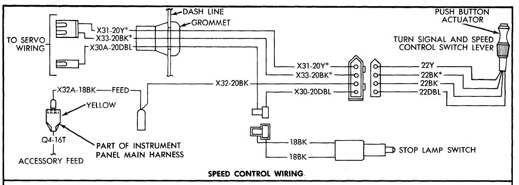 I've attached a screen print of the FSM diagram of the speed control. Also, the engine side and dash side wiring diagrams.