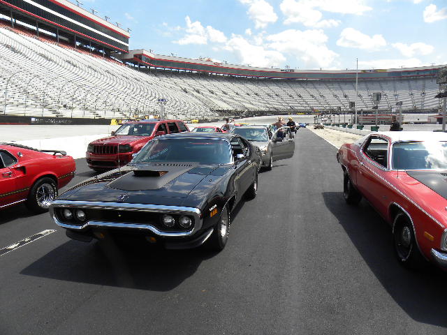 Well, I drove the Bird on it's longest trip so far on Sat. I went to the Ford Fest, with a few Mopars thrown in. This was the first, and last time I will go to that show. When the judges come up with Ford t shirts on, well then there is no use. But as a highlight anybody that wanted, got to do 5 laps around the Nascar track, so that was kind of fun, even though I was scared of doing something to the car.