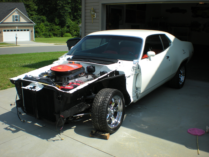 Dale's is a cool car, he's owned it for 21 years, numbers 383 in it with Eldebrock heads, and he's put 40,000 miles on the car since redoing it. It has been to the Nats, Carlisle, up to Detroit, etc. Dale DRIVES the car! It's also been written up in Mopar Muscle. Dale also has a '71 GTX that he's currently working on repainting and then will also drive. He's got a few other cool Mopars as well, like a Superbird and THE Hemi 1970 Road Runner pilot car...