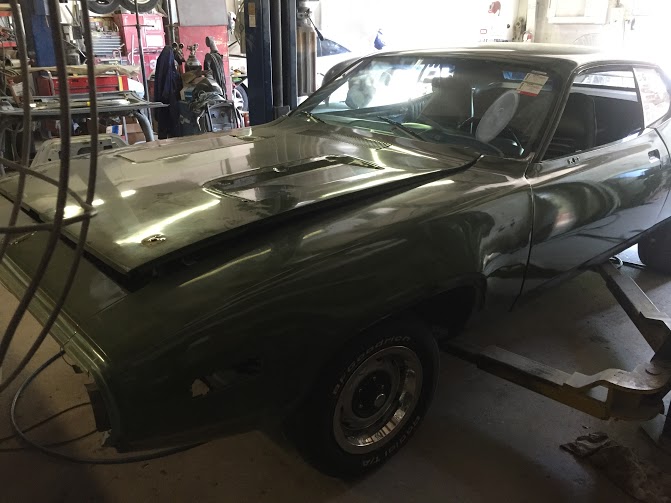 Having completed the long awaited engine tuning work, she runs so smooth, probably would not be able to tell she is 44 years old. Now the part I've been waiting for the body work! Getting a new coat of F7 green, no strobe stripe or go wing/chin spoilers. She's going to look like she did at the dealer!