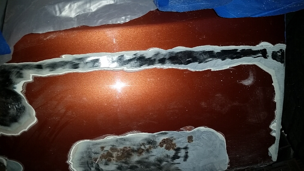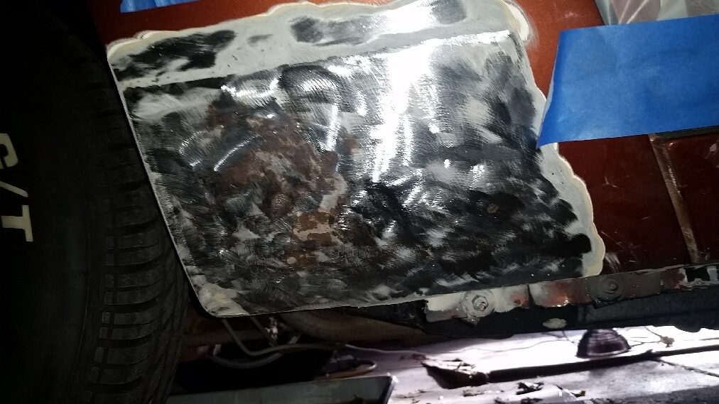 A previous "restorer" tac-welded in some half-assed patched and continuous welded some others. I found bondo nearly 5/16" thick, where the metal was caved in, either from welding warp or physical damage.