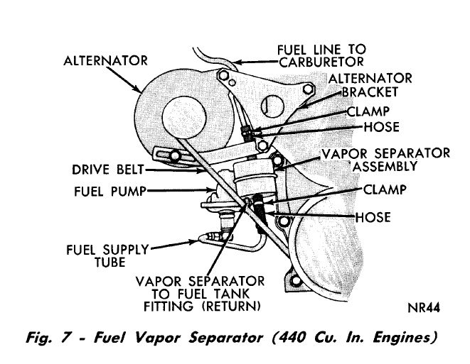 Need some more help guys, I have no idea where exactly the vapor separator goes and what lines go where. I'm lost, never had one for reference its for a 71 440 non/ac car. Looks like it bolts on by the horns on passenger side? Pictures, diagrams, anything would be GREAT!