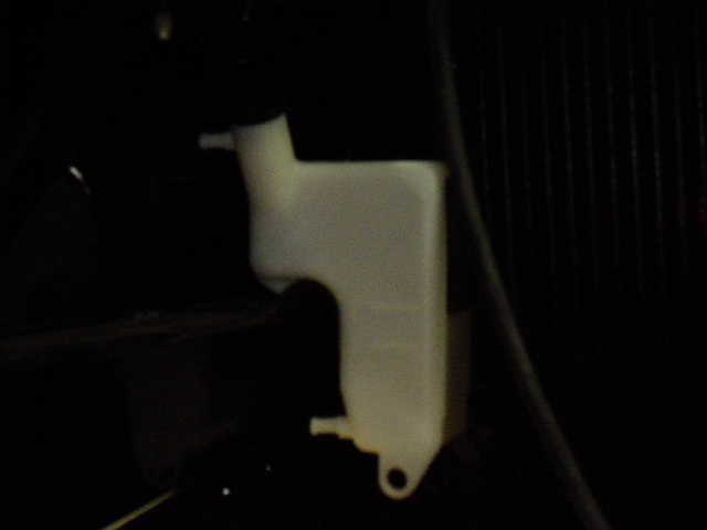 Hi everybody. I have been planing to have a puke tank on my car for a while now but I finally got around to trying to figure it out. My car didn't come with one and because I switched to a 26" radiator I didn't want a factory set up,plus they are pricey.I want to have it hide so most people couldn't see an non factory set up so what I came up with is a puke tank of of my motorcycle which will I think fit nicely and after I paint it mostly black except for a small spot to ck the level, won't be noticed. Now in the pictures I just have it laying in different locations to find the best place. So ck it out and tell me what you think. The black paint is soaking up all the light, so I'll try to get some better pictures up later.