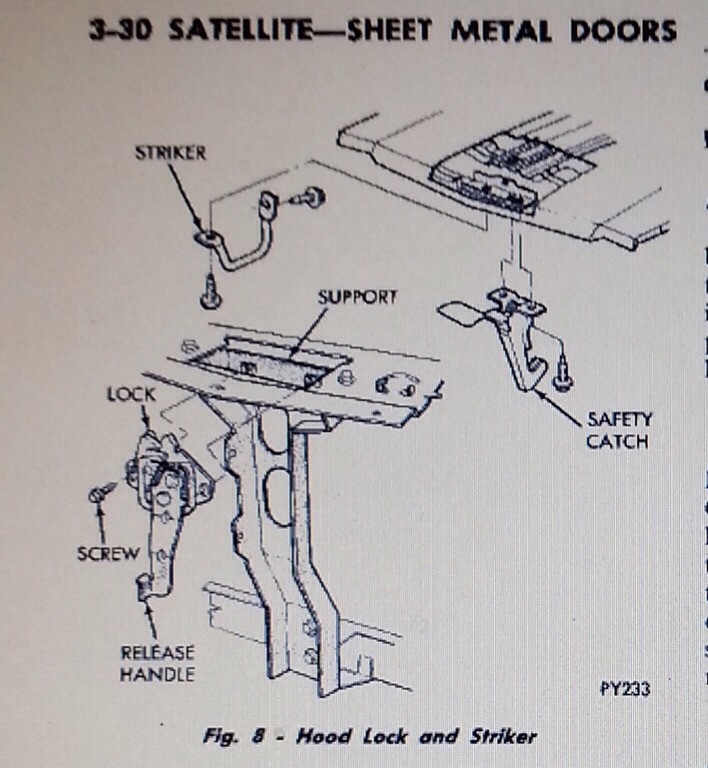 I may have misunderstood. I thought you were asking how and where it mounts. Regardless of which style, the hood lock will mount in the same spot as the FSM image shows. The cable is retained under a strap on the verticle lock support with a single screw.